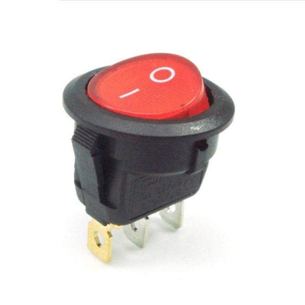 Interruptor Redondo Basculante Rojo iluminado ON/OFF 3 polos con luz 220V